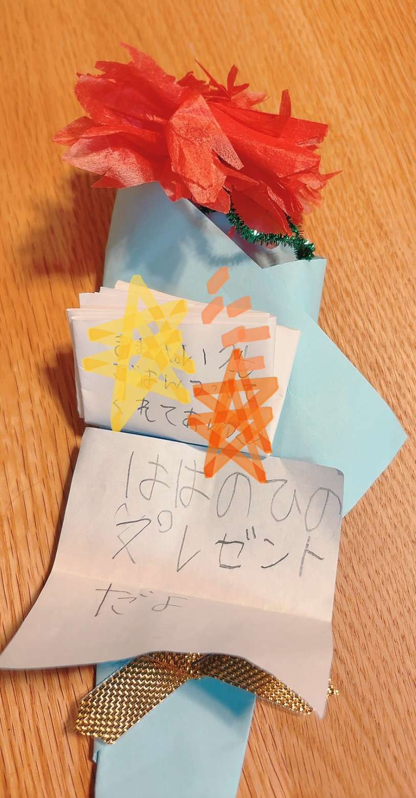 末っ子からは手作りのカーネーション…