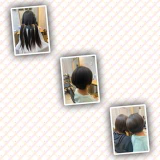 ヘアドネーション☆ショートヘア 2021/12/12 先日…3年伸ばした小学生のお客様が… ヘアドネーションをしたいとご来店頂きました! 誰かのためにやりたい… その気持ちに…心打たれ… 切らせていただいてる時…ちょっと ウルっとしてしまった自分がいました。 ショートヘアもとってもお似合いでした! お母様も一緒にセミロングから切りっぱなしボブに… カラーはラベンダーベージュに… 艶髪になりました!!