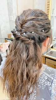 ヘアアレンジ☆ 2023/05/22 おはようございます。 湿度がだんだんと感じる季節になってきましたね… 頑張って梅雨時期乗り切りたいですね。 先日、結婚式に参列されるお客様のヘアアレンジを… 波ウェーブからの ネジネジアレンジ… お任せいただきありがとうございます!